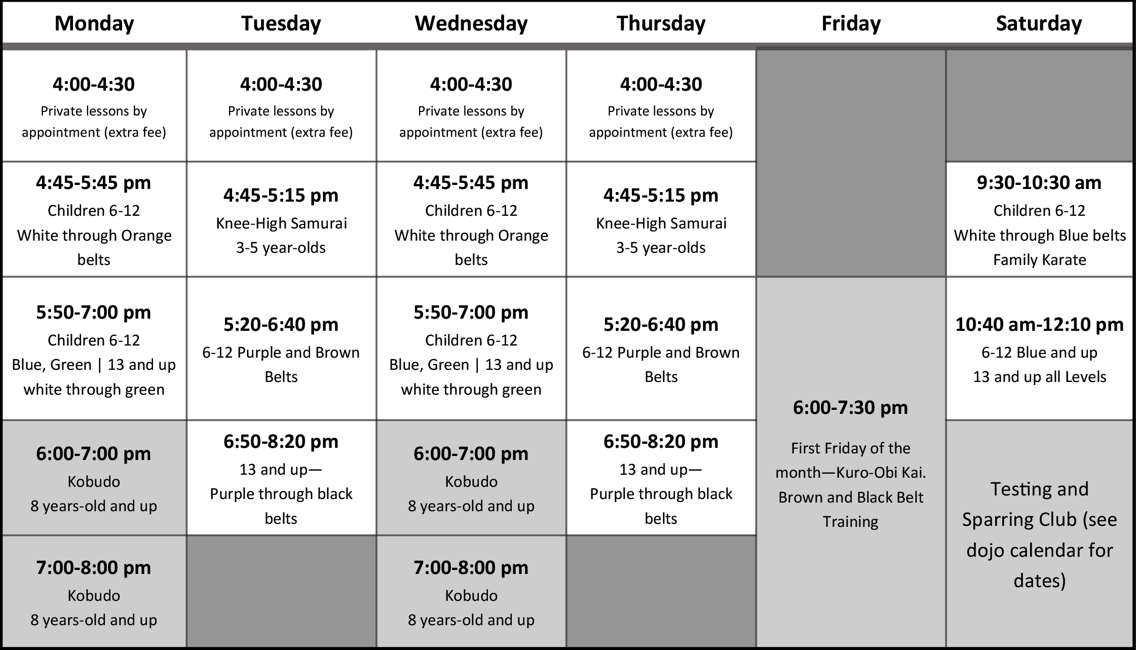 Kobudo 8 and up $60/month $90/month